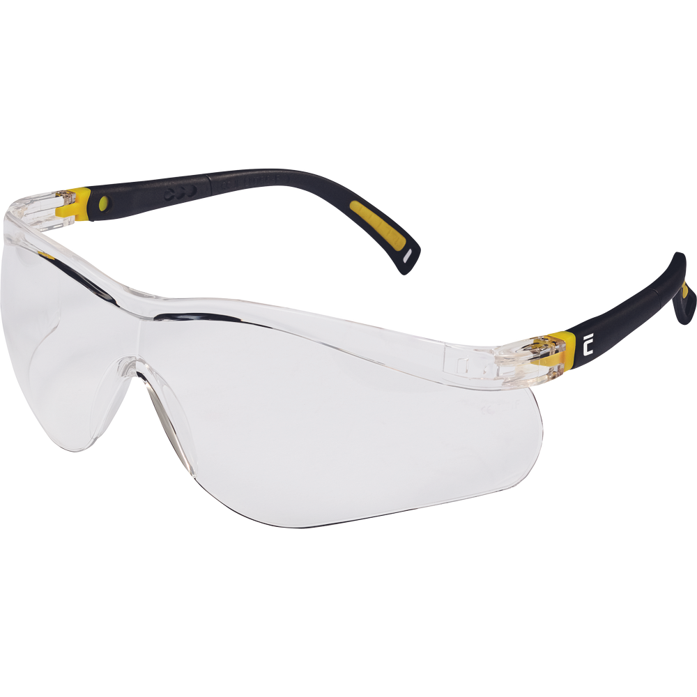 27 grammos, polikarbonát látómezős szemüveg állítható hosszúságú és dőlésszögű szárral, sportos kivitelben. A látómező karcálló és páramentes , EN 166 sz. szabvány szerinti F osztály – kis energiájú becsapódás elleni védelem, 1. optikai osztály, a sárga látómező az EN 170 sz. szabvány szerinti, UV sugárzás ellen védő szűrővel rendelkezik.